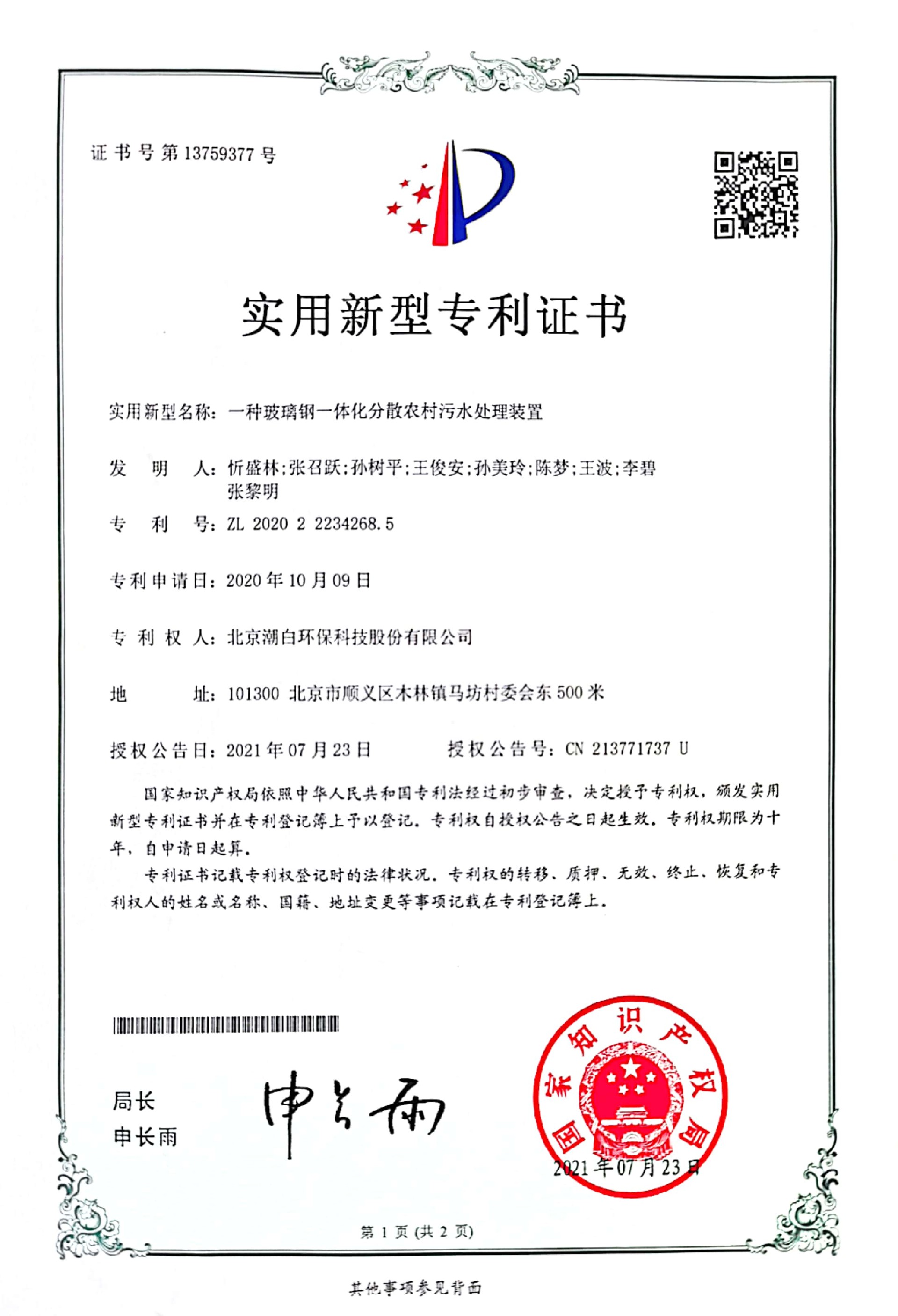 北京潮白环保科技股份有限公司是一家专业从事环境保护与资源循环利用的综合性高新技术企业,注册资金5178万元,成立伊始就组建顾问专家团队加强创新引领,拥有高级、中级职称人员及各类技术人员占比超过50%。